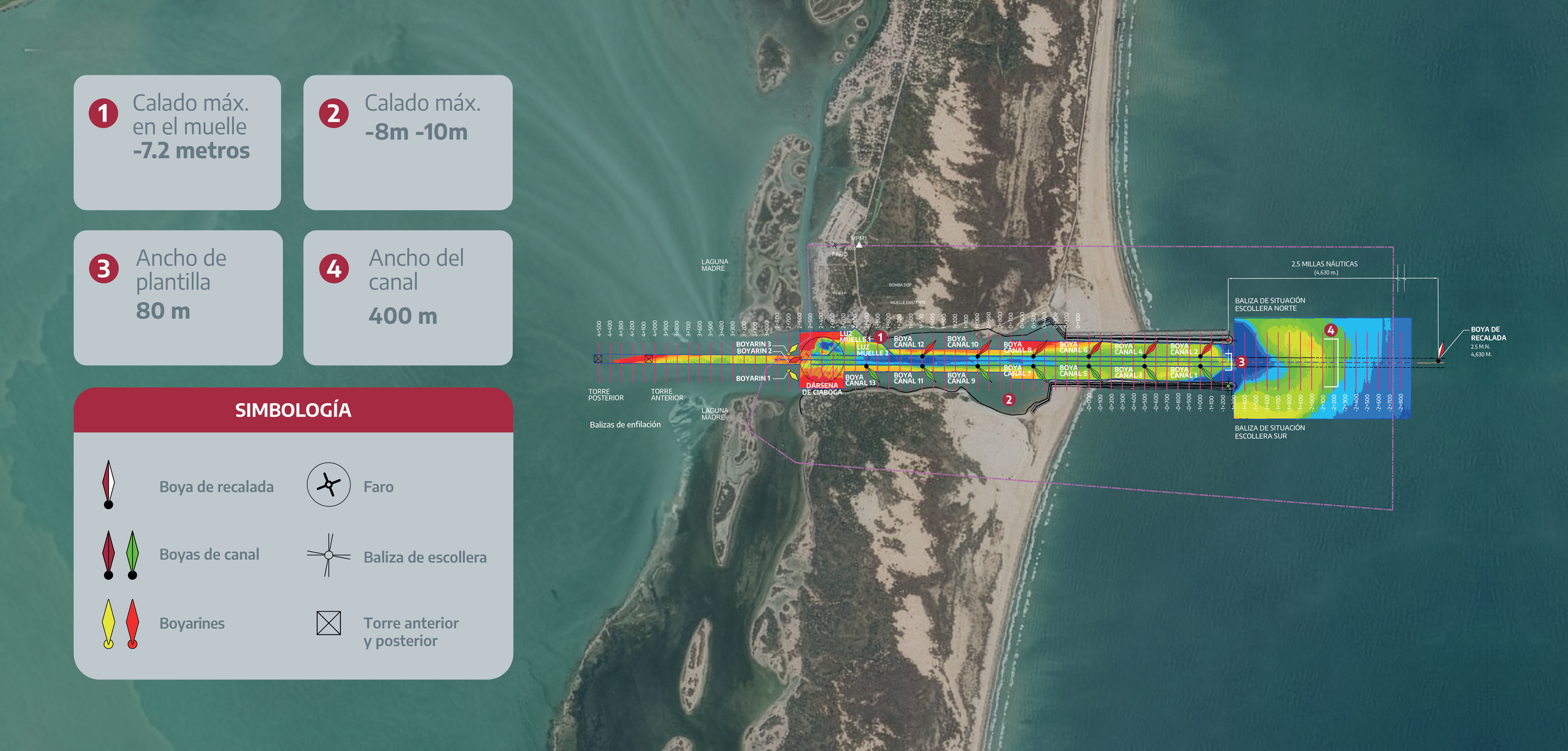 El puerto de Matamoros cuenta con una posición de atraque de 138 m de longitud y profundidad de 10 m, destinada a atender todo tipo de embarcaciones y cargas. Cuenta también con señalamiento marítimo que sirve de apoyo a la navegación segura de las embaraciones.